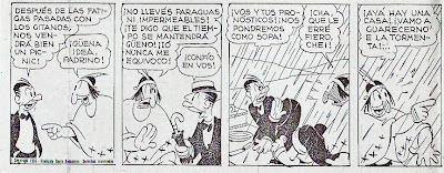 A raíz de un comentario de Sergio, me parece pertinente dejar bien en claro que la cronología que establezco no es la de las publicaciones en el diario El Mundo, sino (en consonancia con la publicada en el libro de La Bañadera) un cruce entre éstas, las de la revista Patoruzú, y (si llego) también de Andanzas.